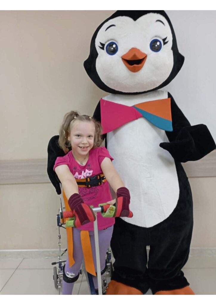 «У нашей семьи есть мечта. Мы хотим, чтобы дочка встала на ножки и пошла самостоятельно. На это направлены все усилия по реабилитации. Но пока мы перемещаемся только на коляске. И нам очень нужна новая коляска. Илона подросла (уже 134 см) и та коляска, которая у нас есть, стала нам мала (коляска рассчитана на рост до 135 см). Это очень ощущается даже в легкой кофточке, а впереди зима, и в верхней одежде она уже в коляску просто не поместится. Собрать средства на новую коляску мы сами не в состоянии (муж – один добытчик, двое детей). Поэтому мне остаётся только надеяться на помощь неравнодушных людей!» — обращается к друзьям UNIHELP мама Илоны Татьяна Шакалис.