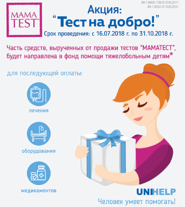 * Покупая тесты на беременность и тесты на определение овуляции «МАМАТЕСТ» со специальным стикером, вы жертвуете 3% от расчетных отпускных цен на: